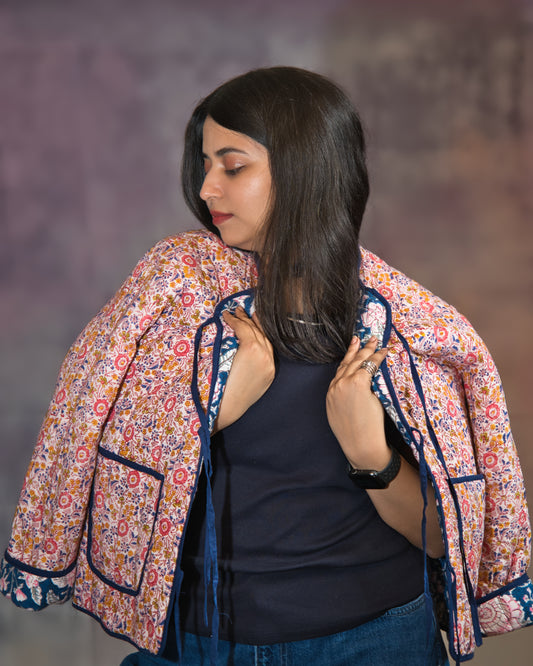 Blue & Light Pink Floral Reversible Jacket