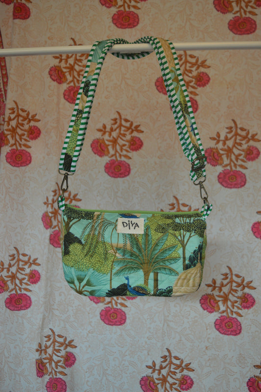 Peacock Print Cotton Crossbody Bag