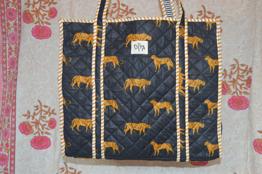 Black Cheetah Quilted Tote