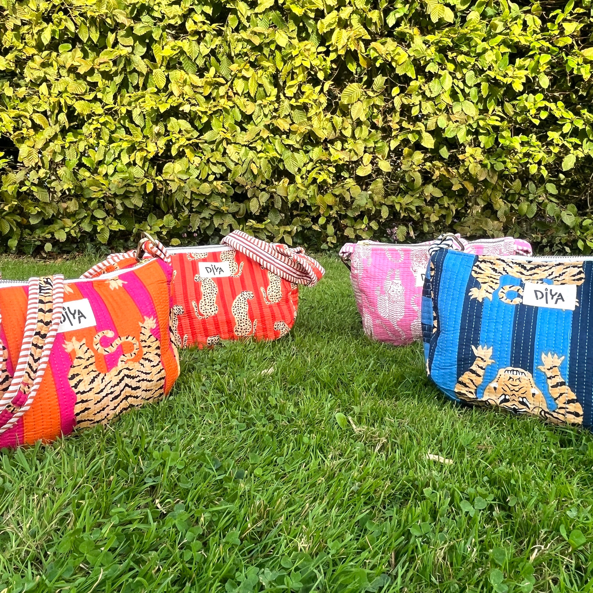 Bring boldness to your style with this Jaipur-made quilted cotton crossbody featuring a striking indigo tiger print. Spacious design with inner pocket, crafted by artisans using sustainable printing methods.