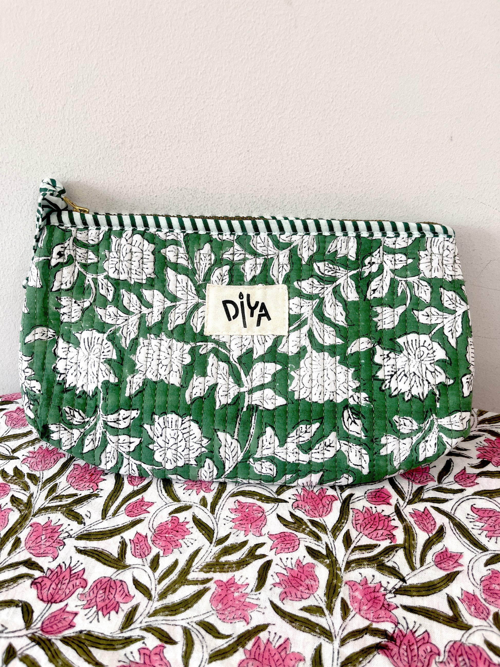 Inspired by lush forest trails, this green cotton pouch brings nature to your desk. Spacious and artisan-made, it blends tradition with a fresh, contemporary feel.