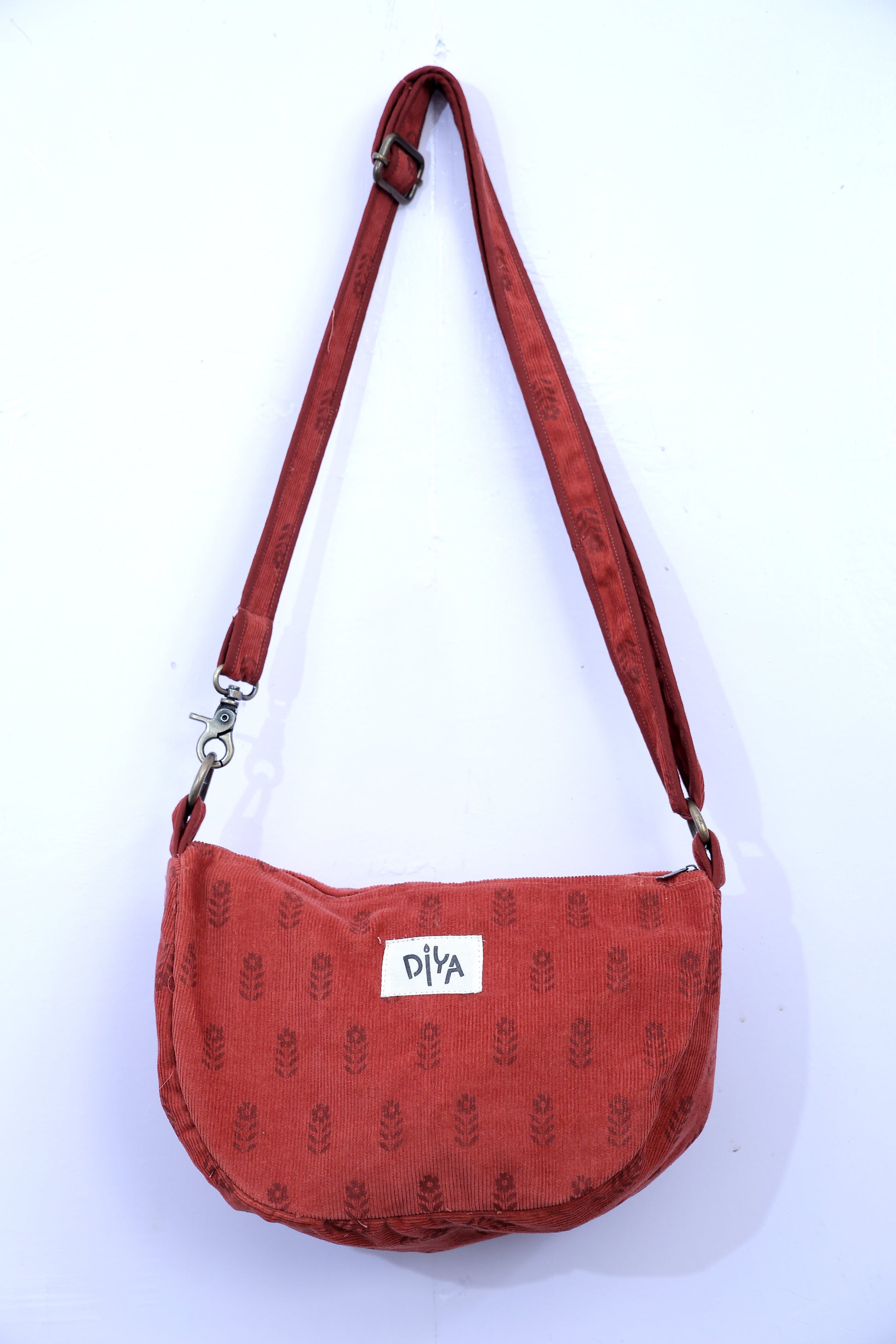 A warm orange corduroy crossbody with bold digital motifs for an eye-catching look. This limited-edition bag pairs soft texture with vibrant design, perfect for everyday wear or city outings. Compact but roomy enough for essentials.