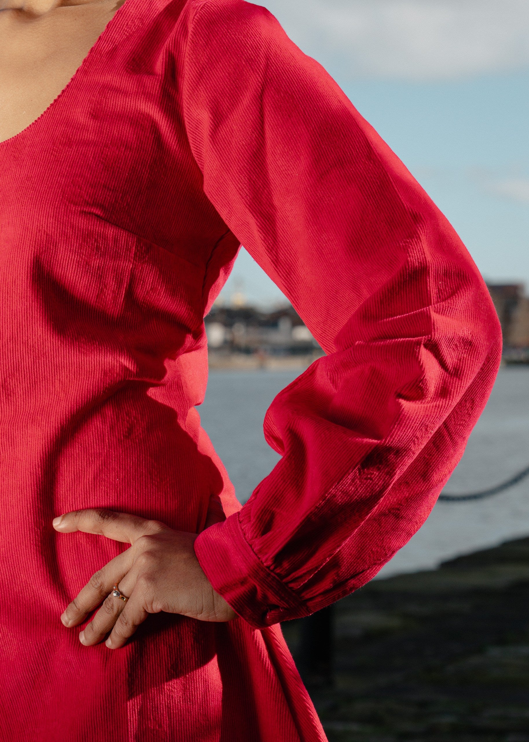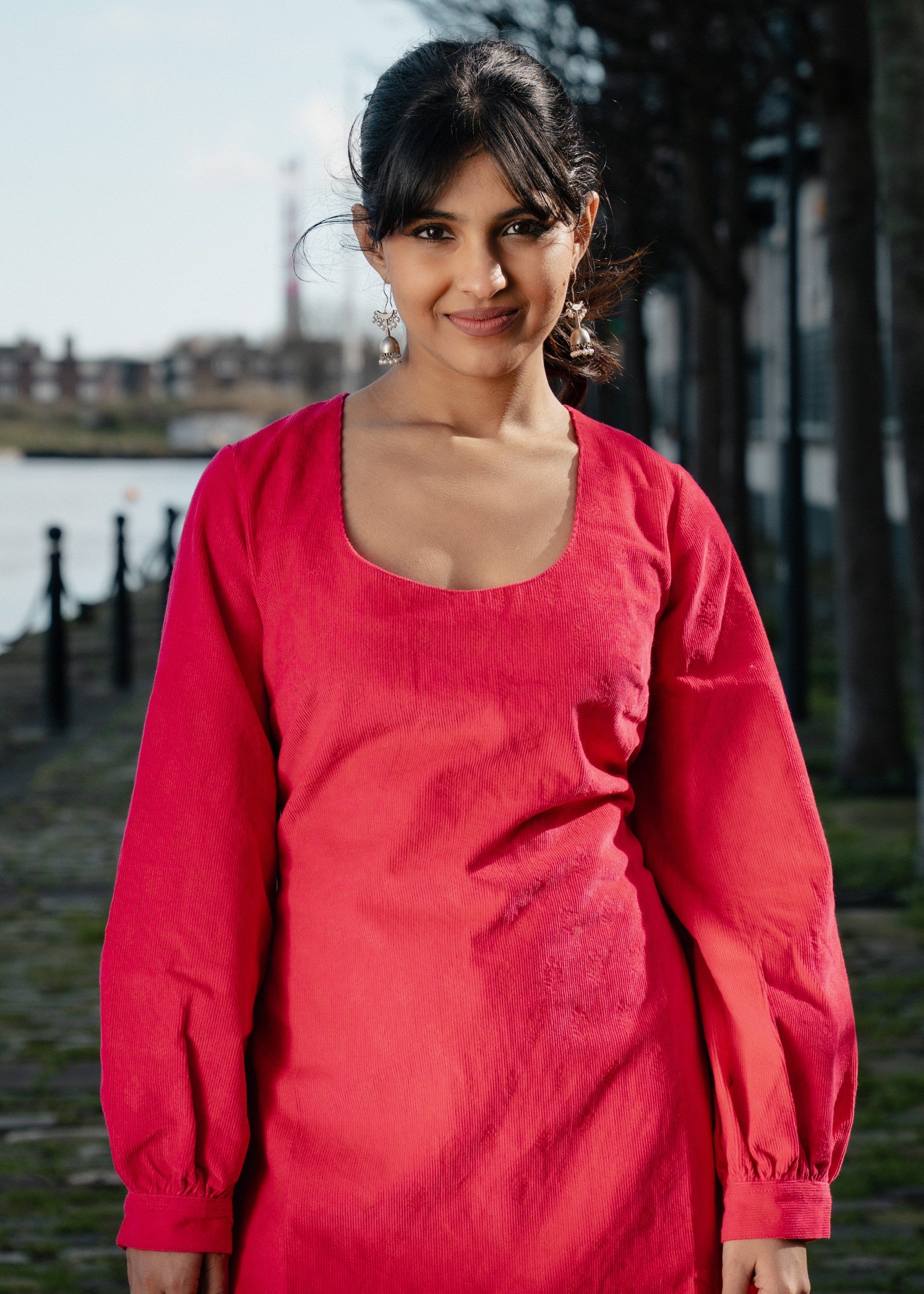This Blush Pink Cord Long Sleeve Dress offers a romantic take on classic corduroy. With hand-finished motifs and comfortable long sleeves, it bridges the gap between traditional craft and modern style.